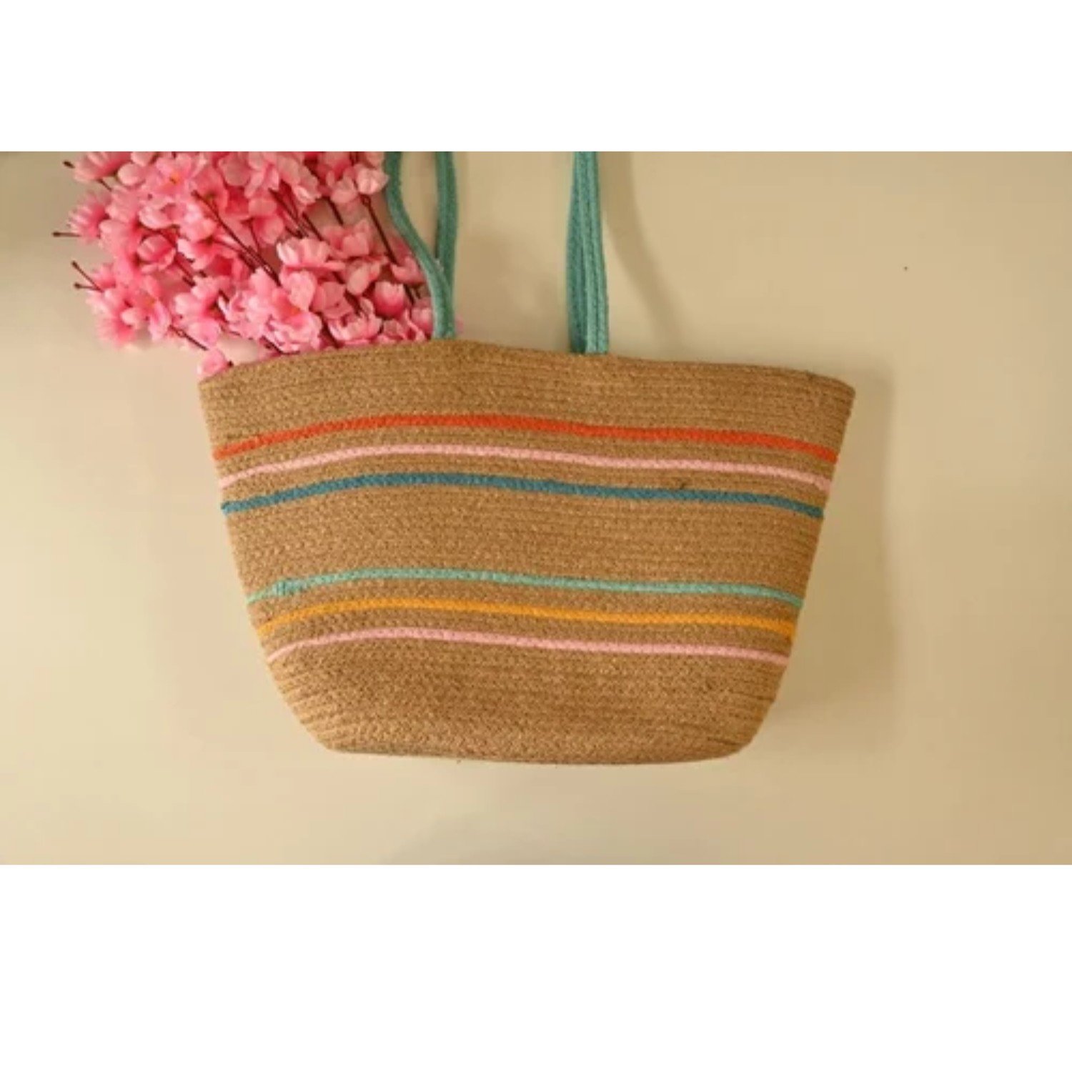 Multicolour Embroidery Jute Handbag
